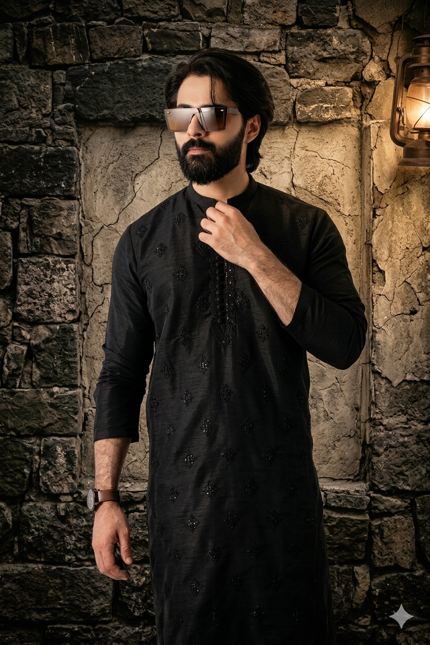 Men’s Formal Kurta pajama Crafted from 100% premium Raw Silk fabric Computer Embroidery and Sequence on it With Very Fine Stitched